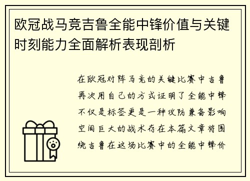 文章摘要的内容: 欧洲冠军联赛,被誉为世界足球最高殿堂,是无数豪门争锋、群星闪耀的终极舞台。在这里,战术与意志交锋,荣耀与命运碰撞,而最令人铭记的,往往是个人英雄主义在关键时刻迸发出的璀璨光芒。无论是孤胆前行的绝杀进球,还是逆境之中的挺身而出,欧冠舞台一次次用传奇瞬间书写着足球史诗。个人英雄并非脱离...
